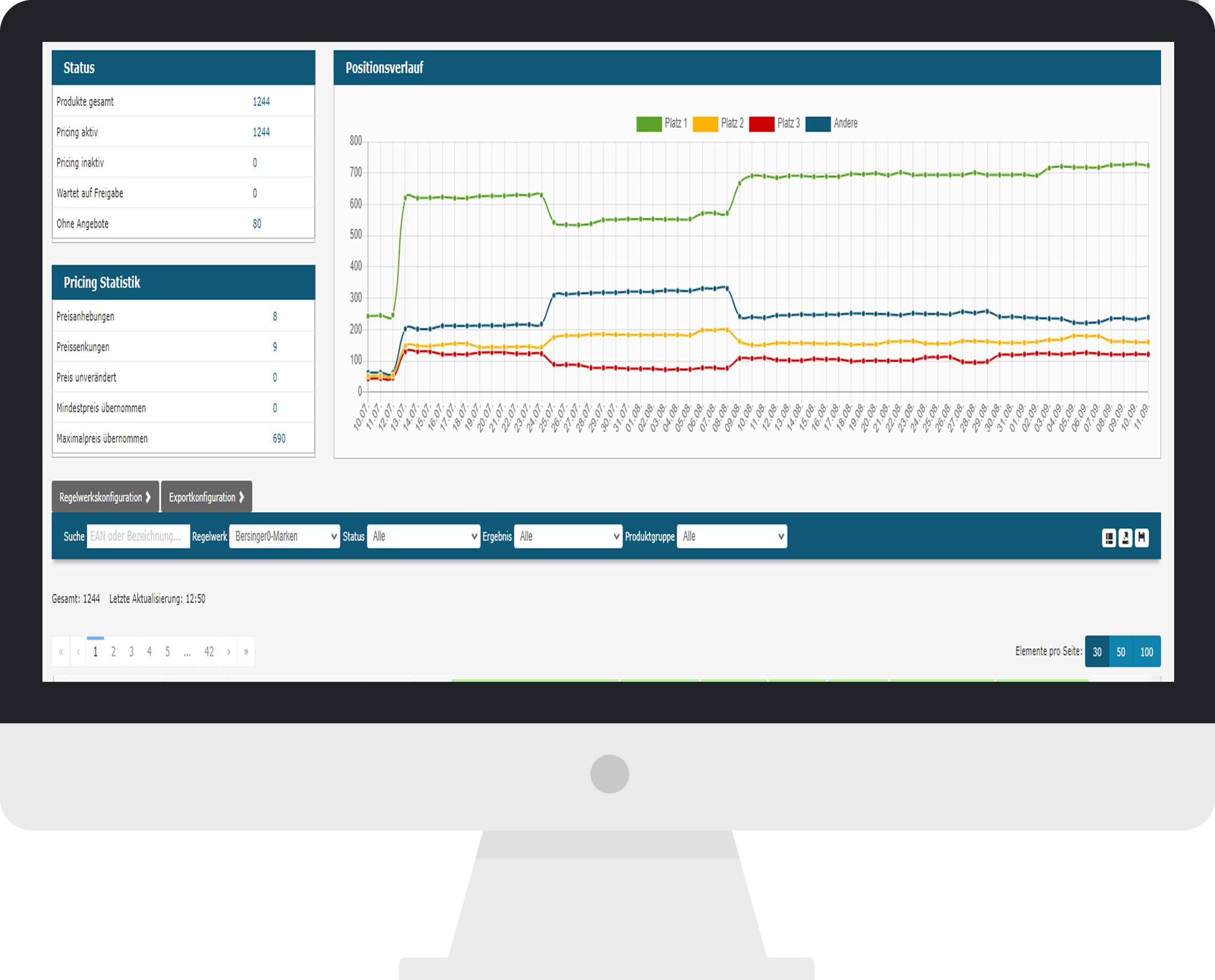 PreisHoheit® provides you with product data on your assortment, which you can use to keep an eye on your competitors. The user-friendly interface shows you exactly the information that is relevant for your competitive pricing strategy.